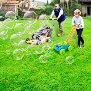 All toddlers like bubbles, it create a beautiful world- green grass, blue sky, old castle with bubbles, like the scene of fairy story.kids can push it to anywhere with bubbles, easy to star and stop the bubbles by pressing the button on bubble mower.It looks just like mom and dad's lawn mower with it's realistic design with shape and engine sounds.Who said yard work had to be boring? Mowing with dad got lots of fun.