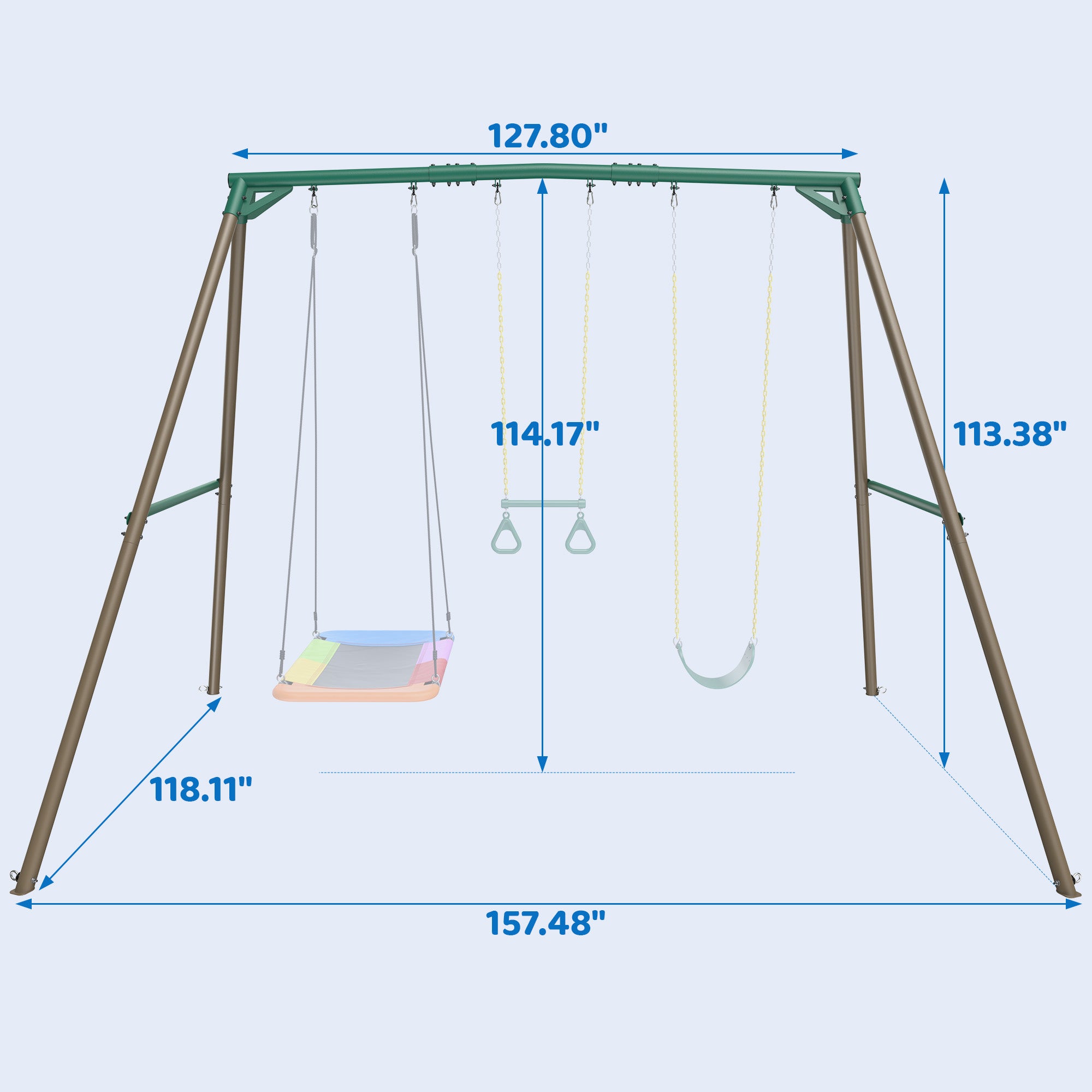 9.5' Swing Sets for Backyard with Platform Swing Belt Swing and Trapeze Bar
