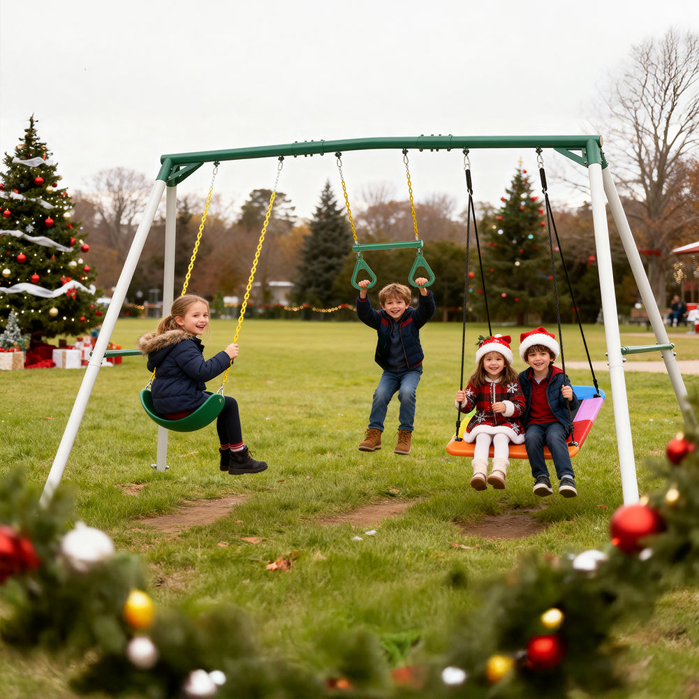 💚3 Swing Options - Combine a social rectangle swing, a challenging trapeze swing bar, and a gentle belt swing with the tall swing frame. This setup offers diverse entertainment options and can accommodate multiple kids at the same time, ensuring everyone has a blast