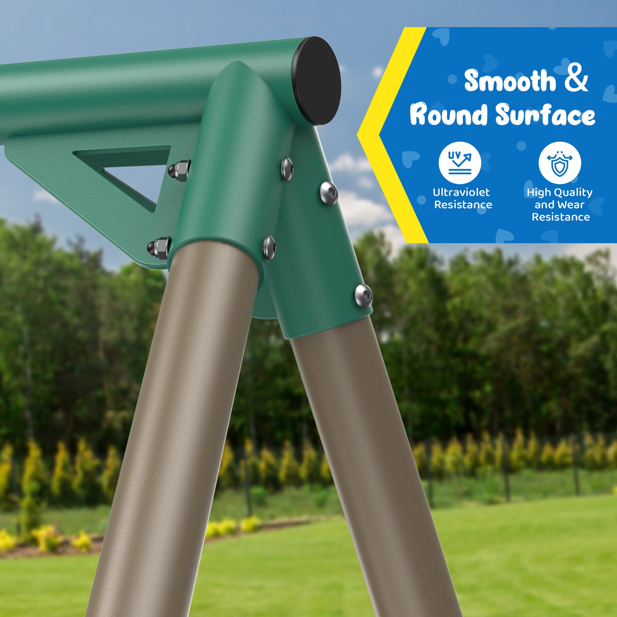 💚9.5' Tall Swing Set - The 9.5-foot-high swing stand allows kids to swing higher and faster, providing an exhilarating experience. Designed for users of different age groups, it's great for the whole family to enjoy together