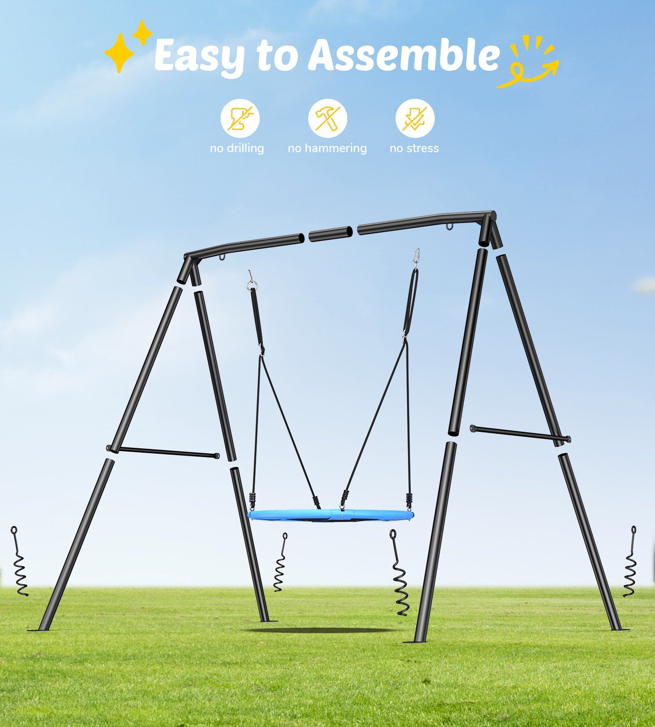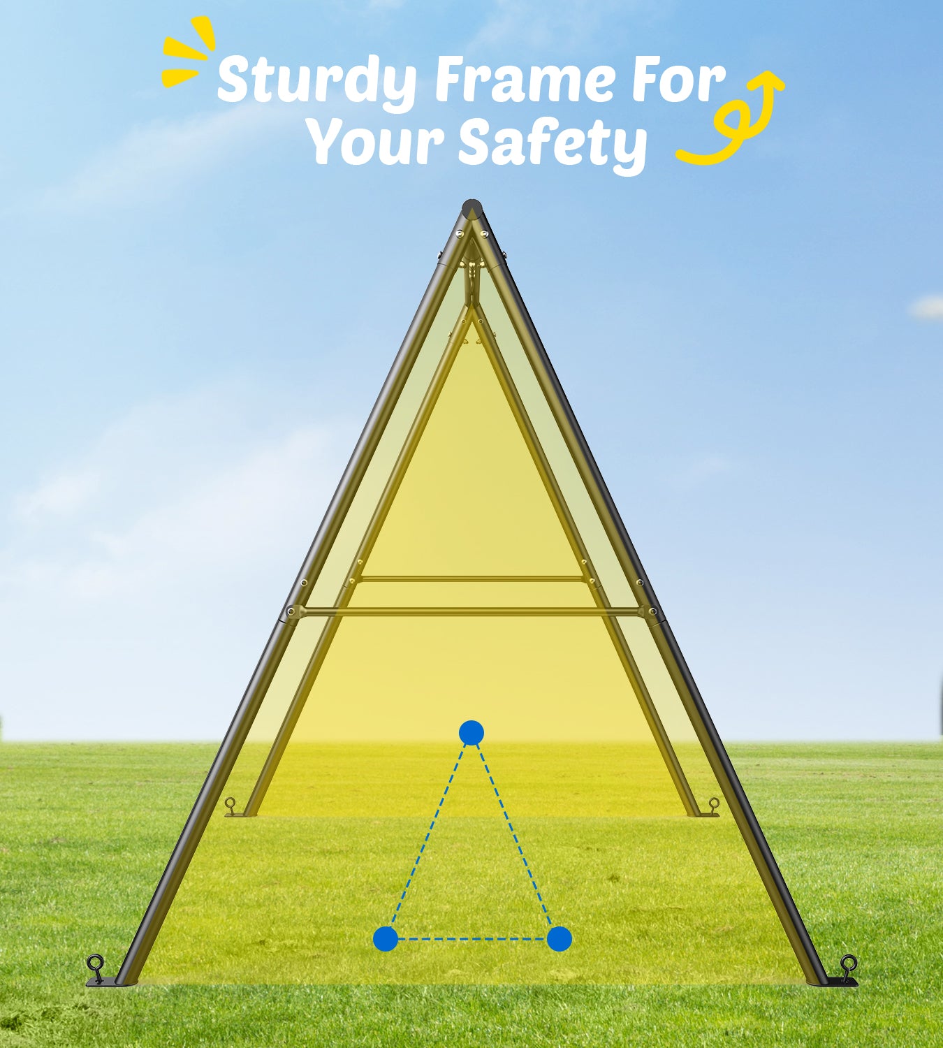 - HEAVY DUTY SWING FRAME: This swing stand can support up to 440lbs with the sturdy A-Frame structure and strong ground anchors, well made to keep kids secure and comfortable while playing crazily. Parents can leave kids to enjoy themselves or join them in the fun.