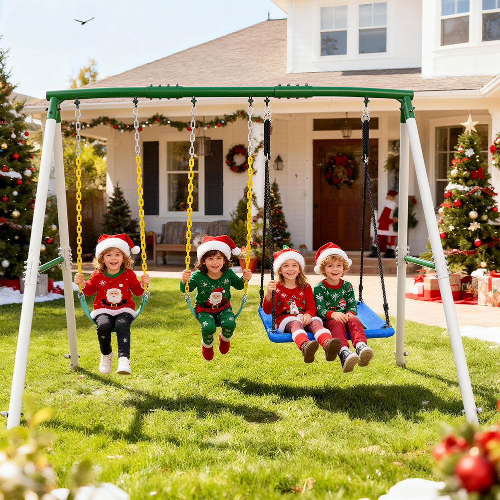 7.3ft Tall Heavy Duty Swing Set, 3 Swings Metal Swing Sets for Backyard, Big Kids Playset for Playground Outdoor