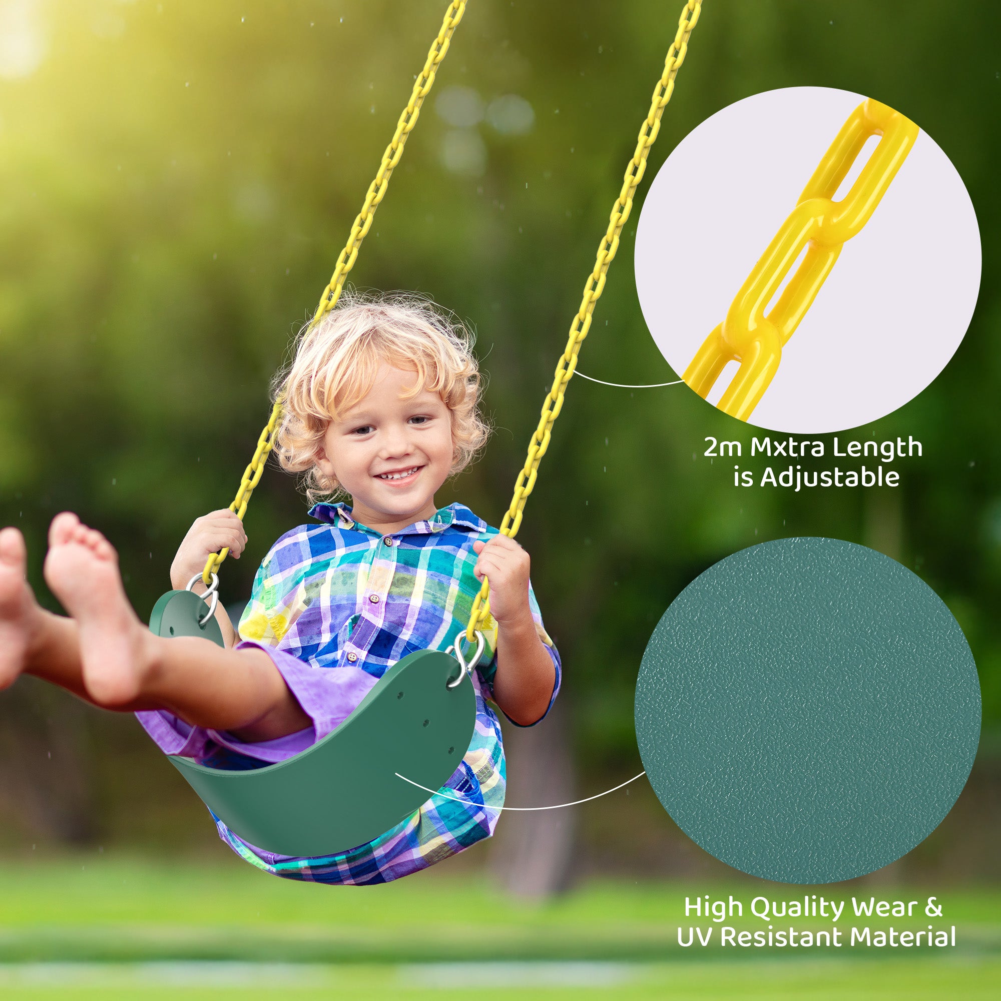💚3 Swing Options - Combine a social rectangle swing, a challenging trapeze swing bar, and a gentle belt swing with the tall swing frame. This setup offers diverse entertainment options and can accommodate multiple kids at the same time, ensuring everyone has a blast