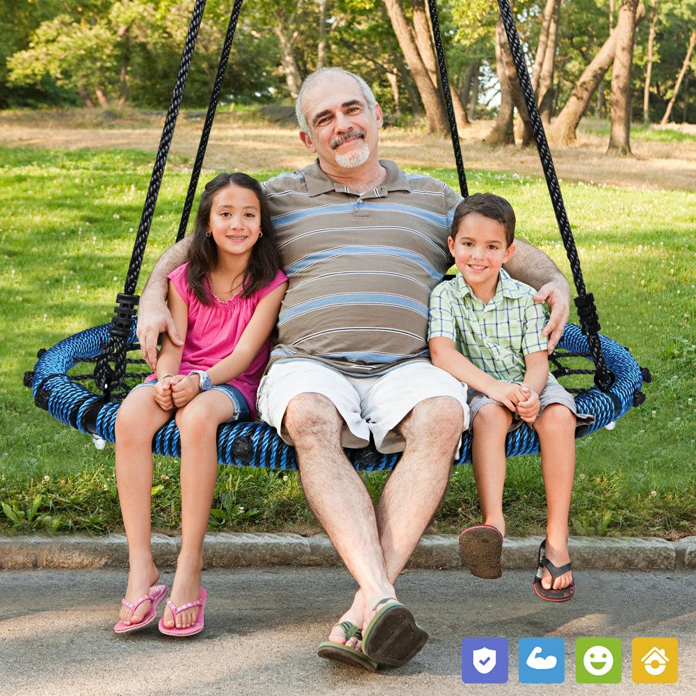 - Safe & Durable: High quality extra thick 71-inch length suspension rope with metal rings for secured fastening, adjustable length ropes & weatherproof, which ensure this tree swing will last you and your kids for years.